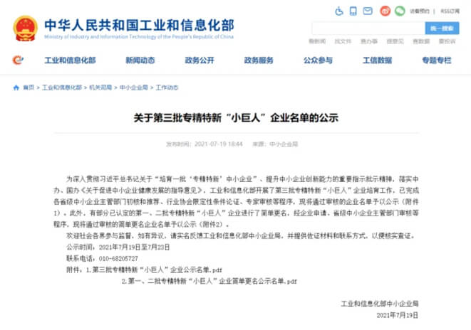 根据中华人民共和国工业和信息化部于近日公布的《关于第三批专精特新“小巨人”企业名单的公示》,商客通尚景科技(上海)股份有限公司(以下简称“公司”) 被认定为国家级专精特新“小巨人” 企业。